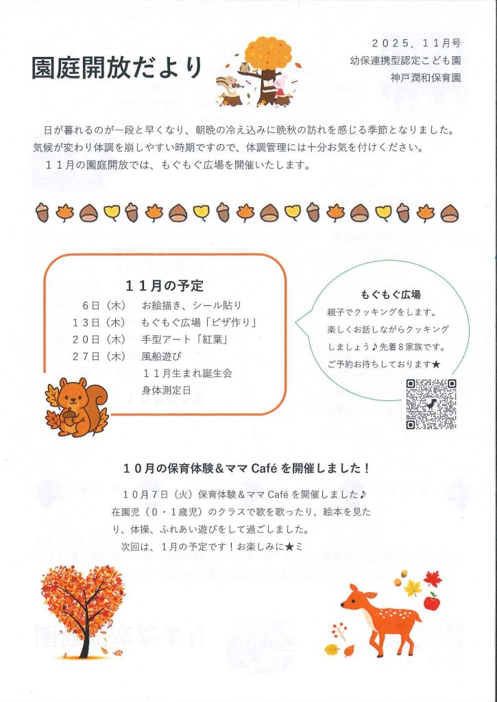 11月の園庭開放は、もぐもぐ広場や製作をします。