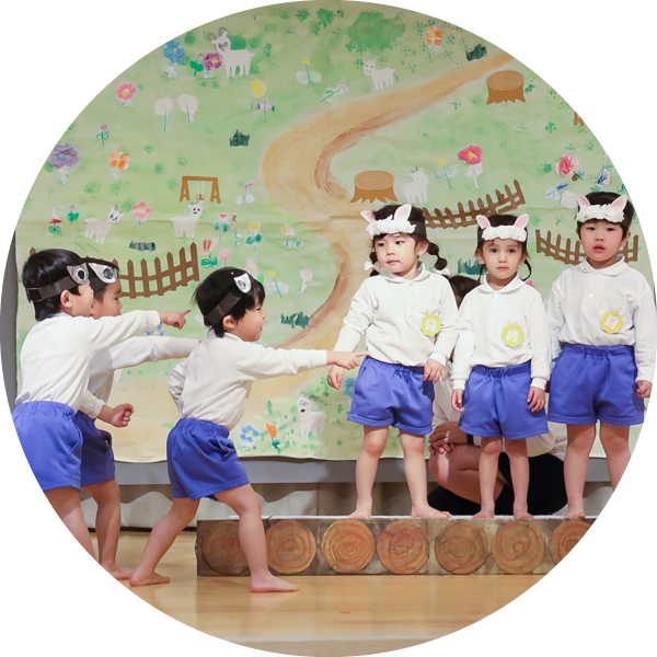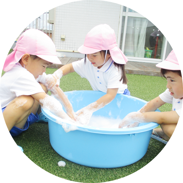 3~5歳児保育士の先生やお友だちと一緒に共通の遊びをすることによって、生きる力の基礎となる心情や意欲や態度など、たくさんの大切なことを学びます。